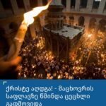გილოცავთ! მაცხოვრის საფლავზე წმინდა ცეცხლი გადმოვიდა. ქრისტე აღსდგა! იერუსალიმში, მაცხოვრის საფლავზე, წმინდა ცეცხლი გადმოვიდა. სასწაული კიდევ ერთხელ განმეორდა – მართლმადიდებლების რწმენით, ზეციური ცეცხლის გადმოსვლა უტყუარი ნიშანია მართლმადიდებელი ეკლესიის სწავლების ჭეშმარიტებისა და მასში მადლის არსებობის. საფლავთან შეკრებილი მრევლისთვის წმინდა ცეცხლი იერუსალიმისა და სრულიად პალესტინის პატრიარქმა, თეოფილე III-მ გამოიტანა. მორწმუნეები ცეცხლს ერთმანეთს უნაწილებენ.იერუსალიმის მართლმადიდებელი პატრიარქი აღდგომის ტაძარში […]